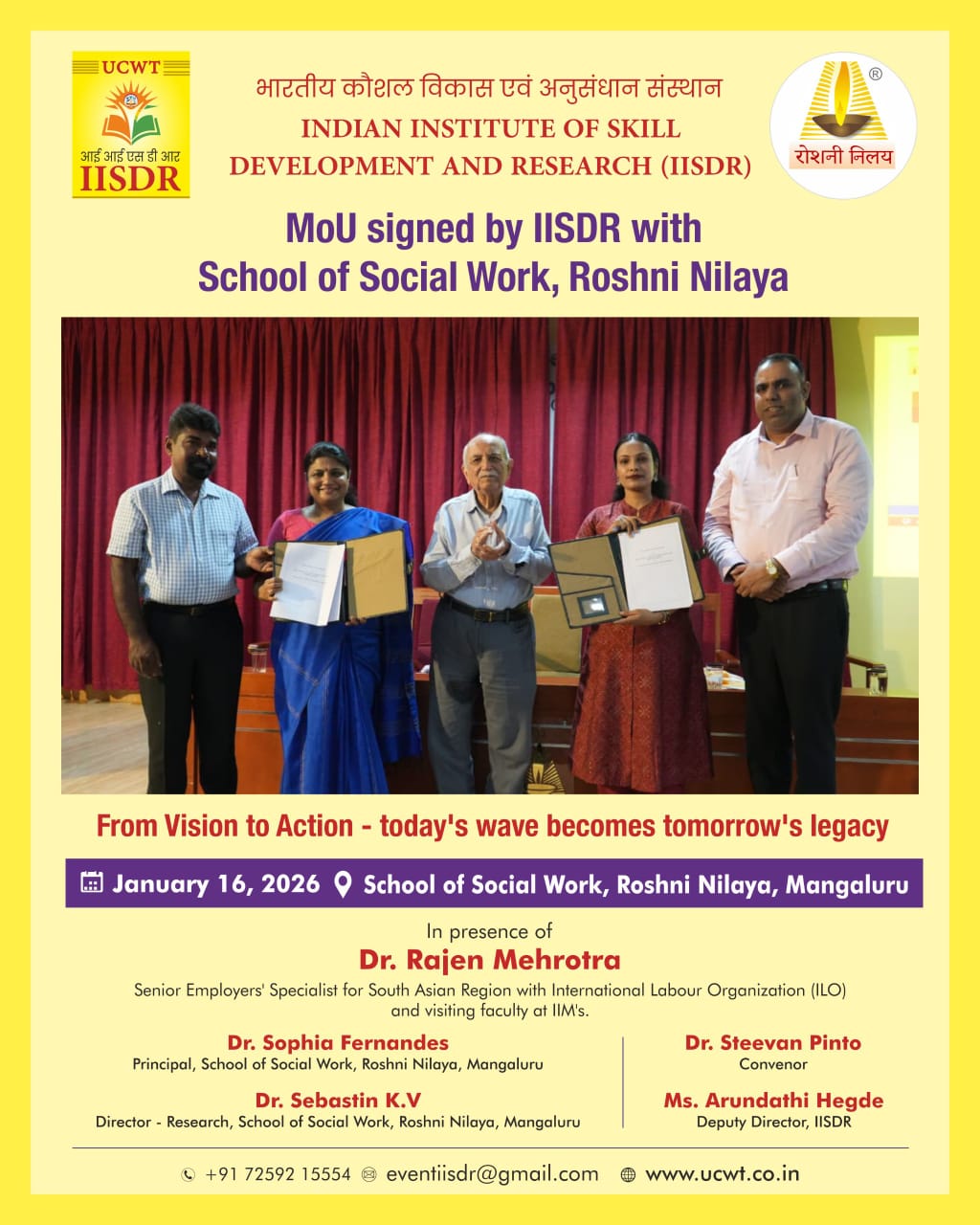 View DetailsHighlights on MoU signed by IISDR with School of Social Work, Roshni Nilaya, Mangaluru