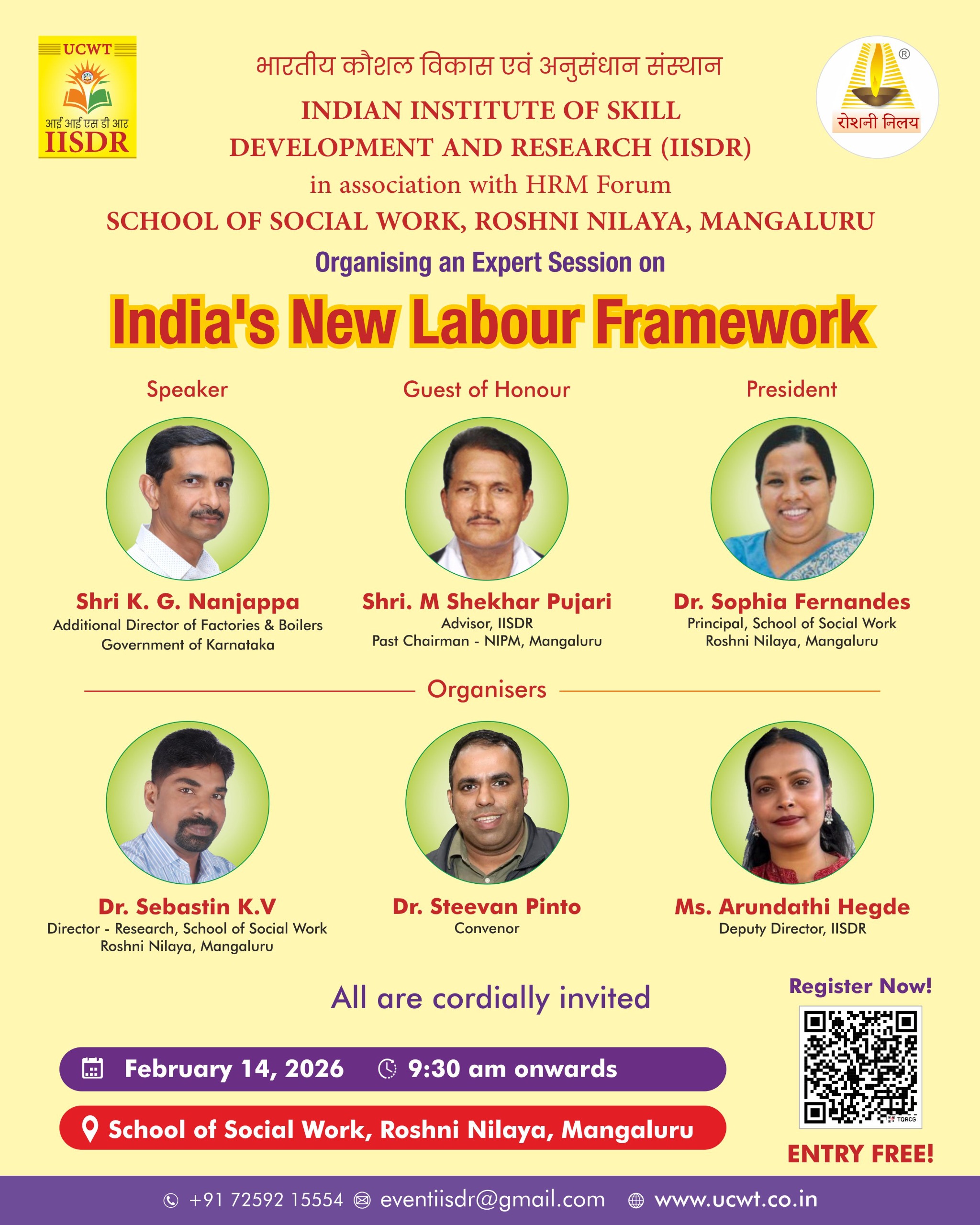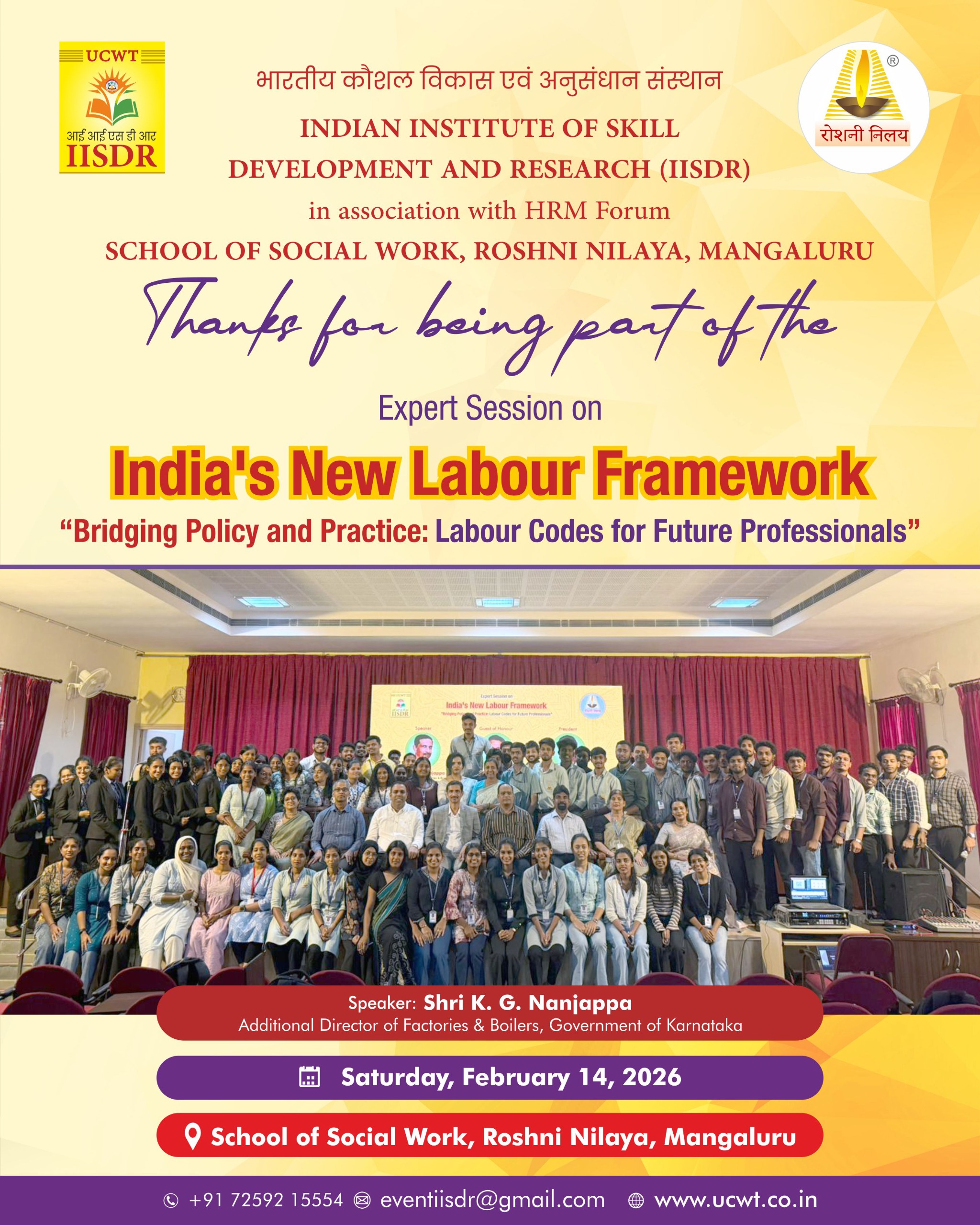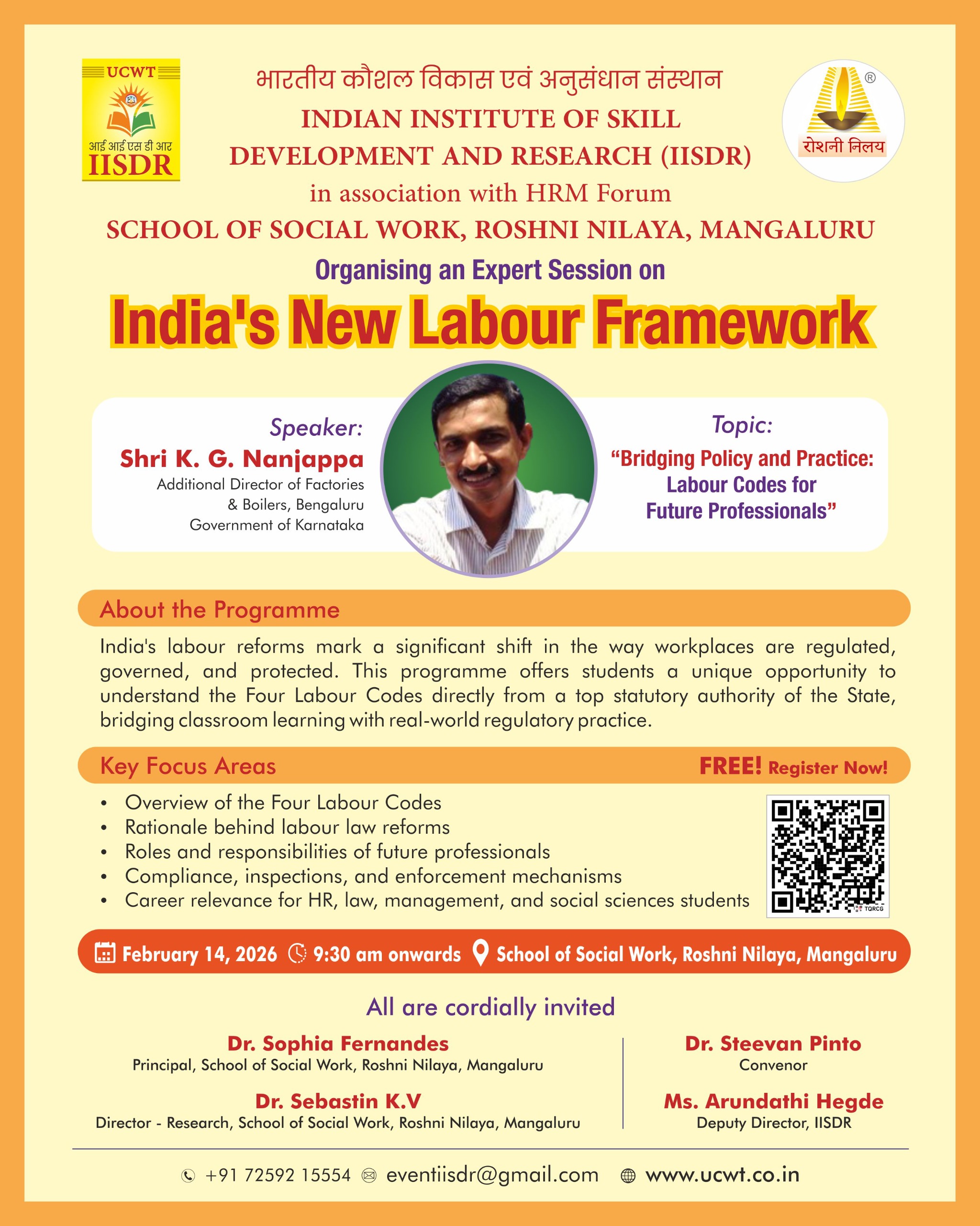 View DetailsInvitation - Expert session on India's New Labour Frame on February 14, 2026 by Shri K. G. Nanjappa, Additional Director of Factories and Boilers, Government of Karnataka.